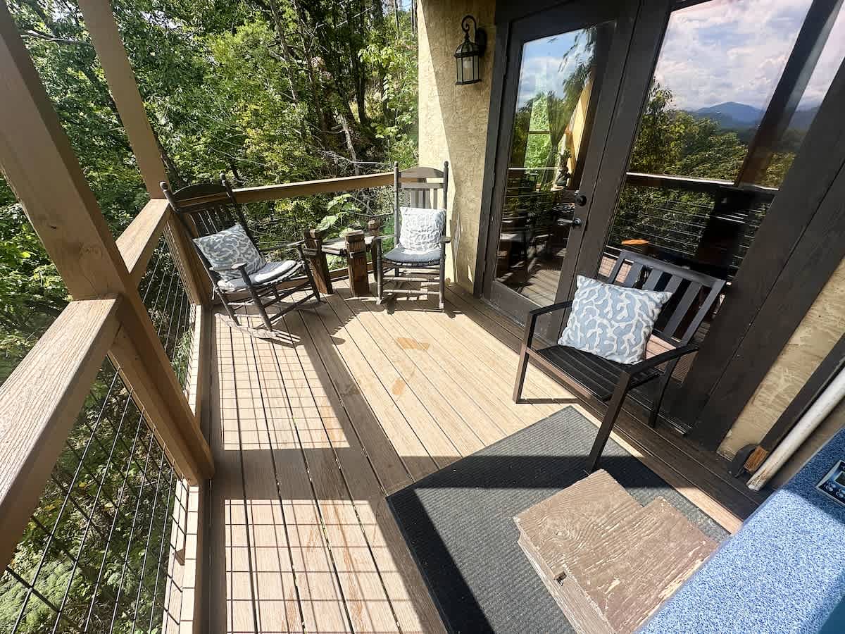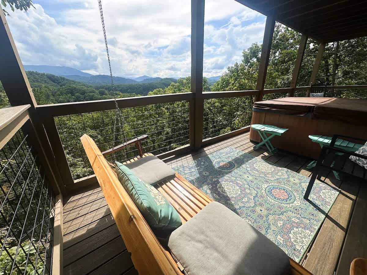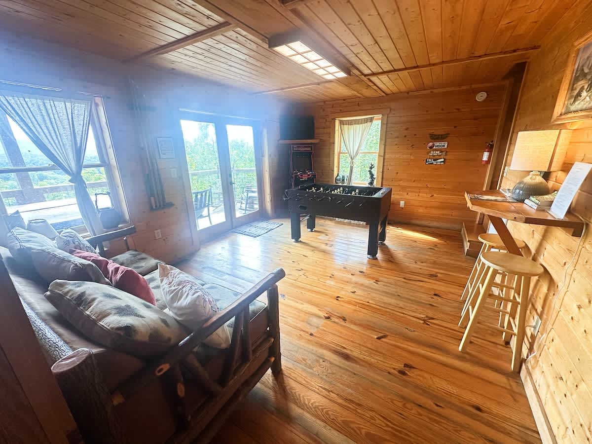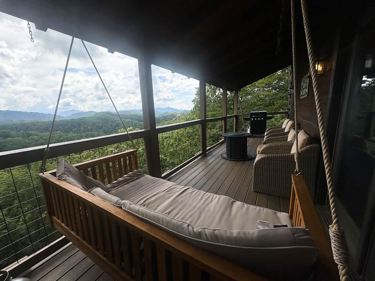 Smoky Ridge Retreat | 3 Miles to Pigeon Forge | Private Hot Tub Escape to this inviting 2-bedroom, 2.5-bath cabin in Sevierville, where relaxation and adventure meet! Soak in peaceful mountain views from the private hot tub, sway on the upper level day bed, lower level porch swing, or grill up dinner before a night of foosball fun. With Dollywood, the Island, and Great Smoky Mountain just minutes away, this cozy retreat is the perfect base for your next Tennessee getaway.